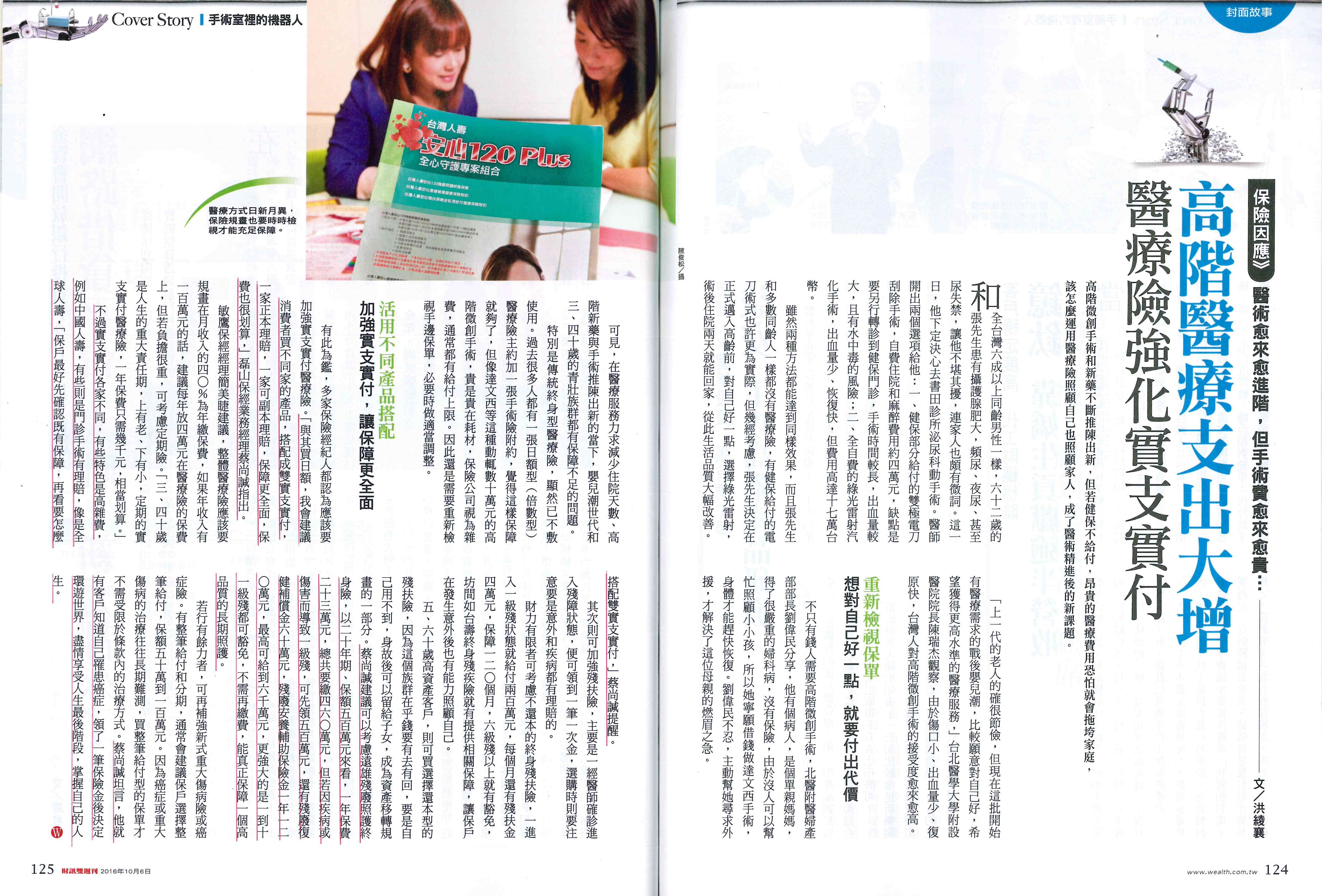 【財訊雙周刊2016.10No.513】高階醫療支出大增醫療險強化實支實付